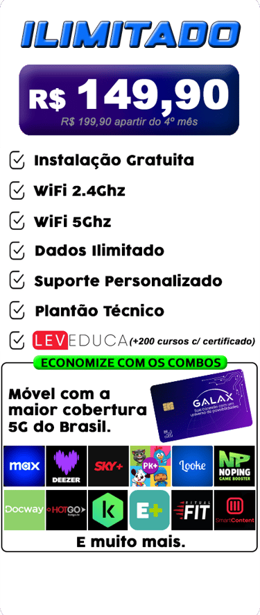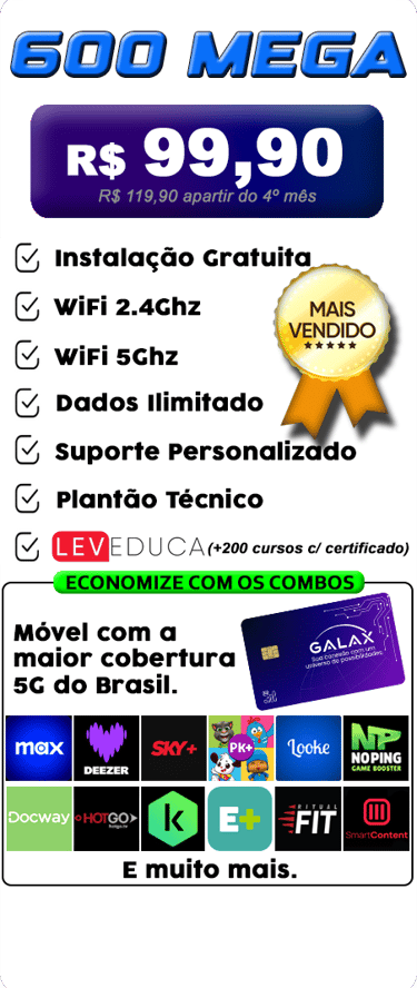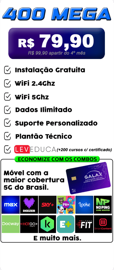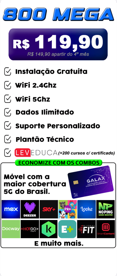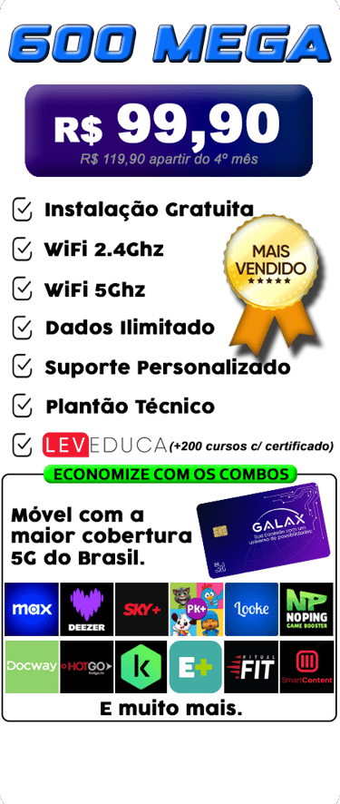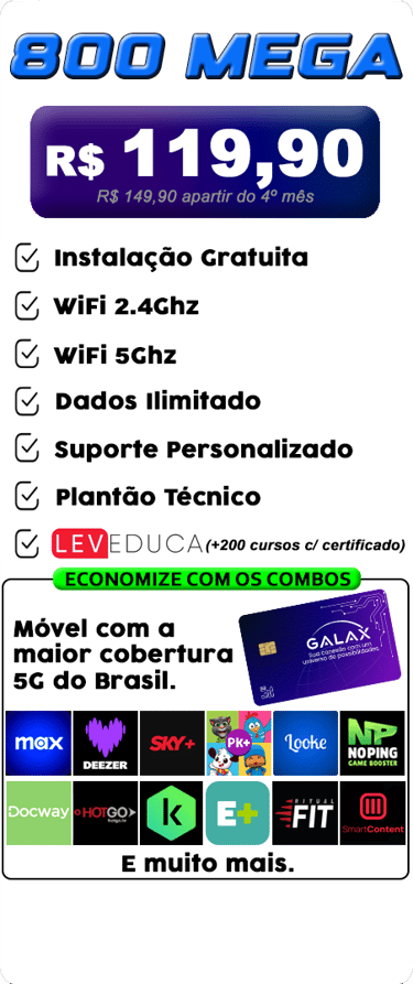 Estou muito satisfeita com a qualidade da internet e o suporte da Galax. Recomendo!