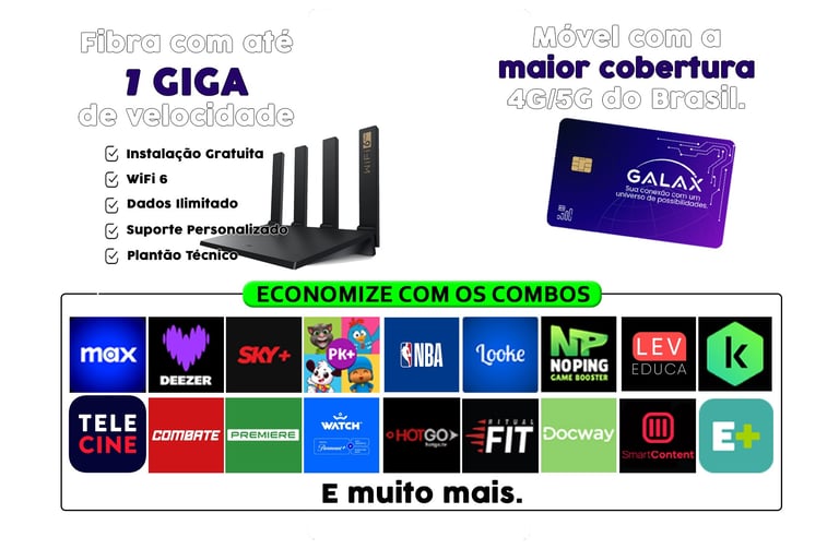 A melhor fibra, telefonia móvel, app's de tv, música e muito mais...